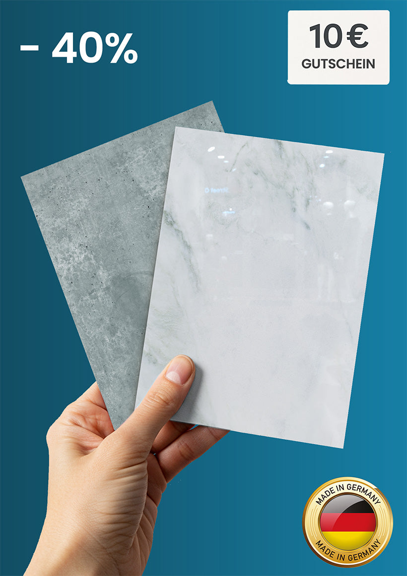 Wichtig: Für die Variante "Deluxe Glasoptik" sollte für ein optimales Ergebnis der Untergrund möglichst glatt und eben sein. Wellige Fliesen oder Raufasern sind hier nicht geeignet, da sie die Lichtreflektion in der Glasoptik stören würden.