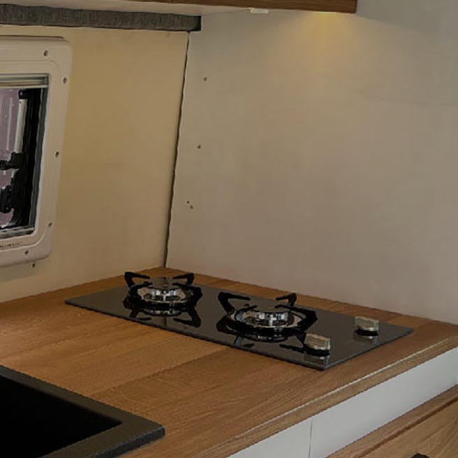 Gasherd: Nicht geeignet - bei offenen Flammen wäre die entstehende Hitze zu hoch. Hier kann eine Glasplatte als Hitzeschutz davor montiert werden.