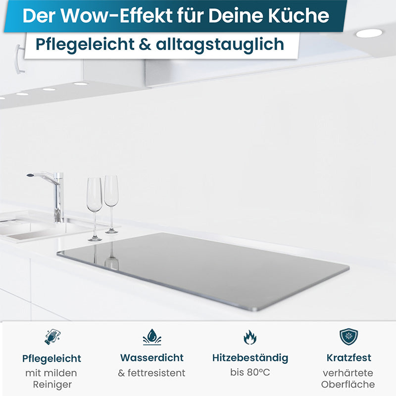 Bietet brillante Tiefenwirkung echter Glasrückwände mit hoher Kratzfestigkeit.